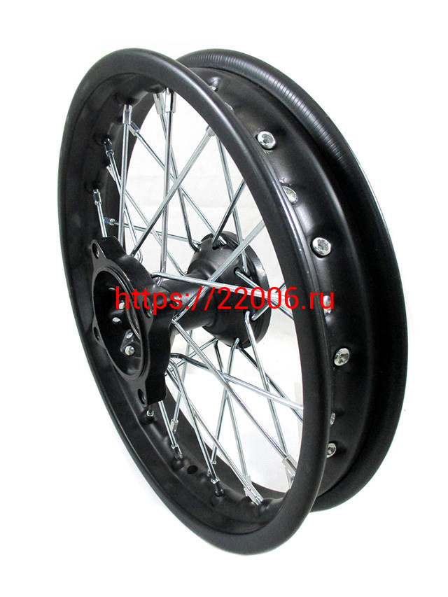 - Диск колеса передний стальной на спицах 1.40 - 12" цвет черный, дисковый тормоз ось 15мм Питбайк в Уфе недорого
