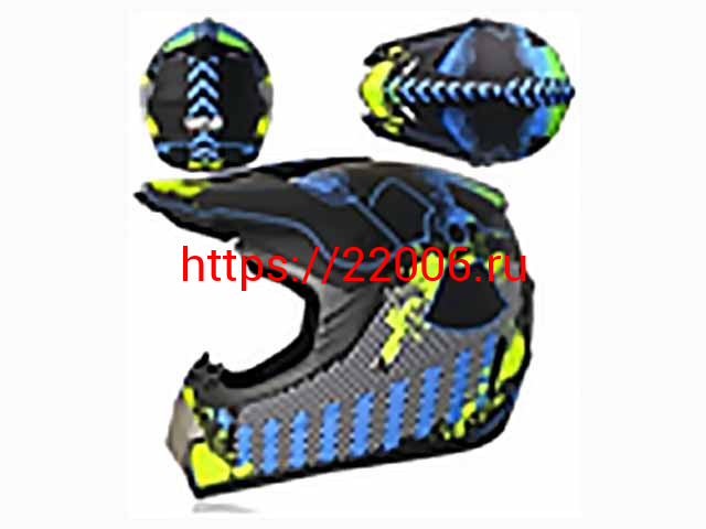 - Мотошлем VIRTUE MD-905 Кросс черный матовый с сине-салатовым рисунком (S) в Уфе недорого
