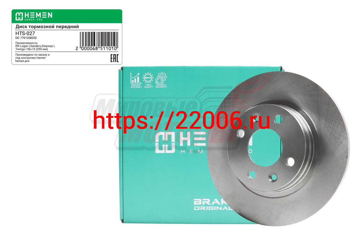- Диск тормозной передний Renault Logan I,II,Sandero,Stepway I,Twingo I 96>15, диам. 259 мм (HTS027) в Уфе недорого