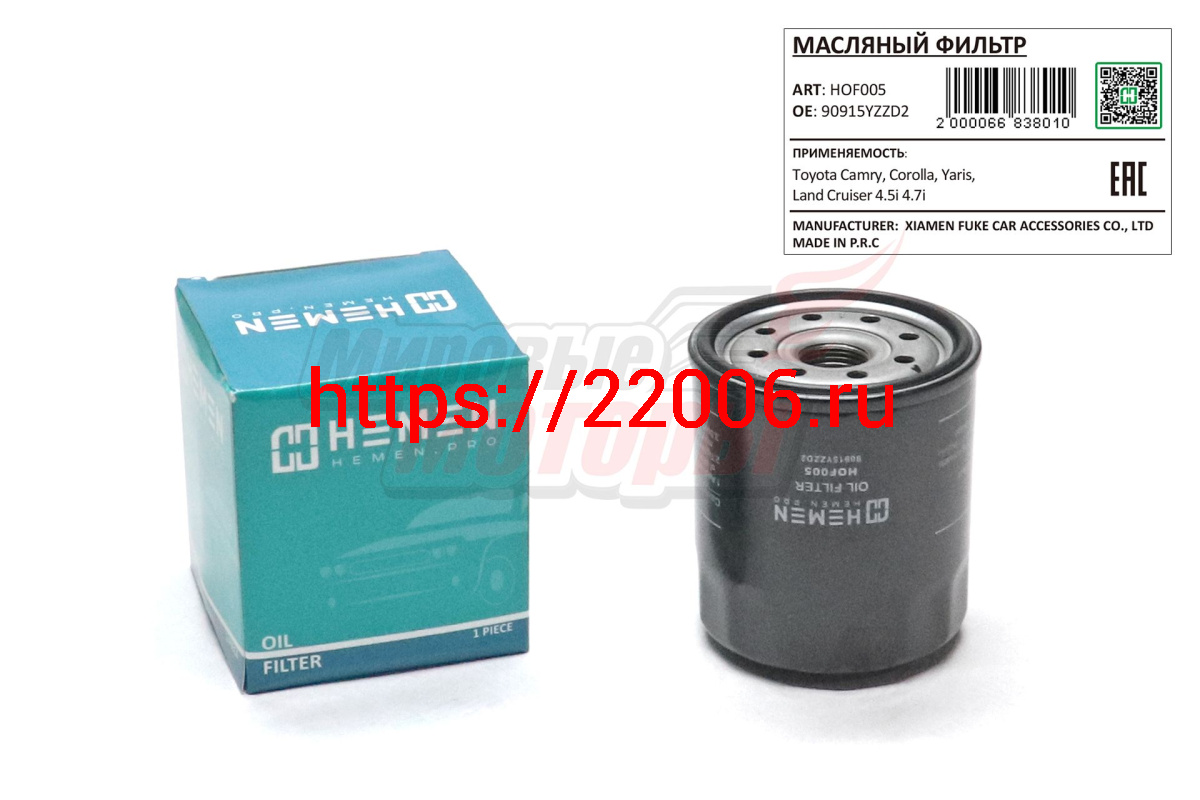 - Фильтр масляный Toyota Camry, Corolla, Yaris, Land Cruiser 4.5i 4.7i (HOF005) в Уфе недорого