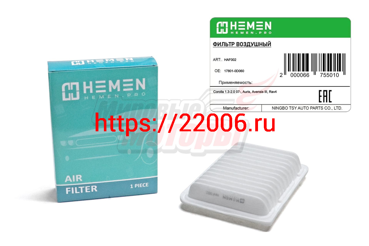 - Фильтр воздушный Toyota Corolla 1.3-2.0 07-, Auris, Avensis III, Rav4 (HAF002) в Уфе недорого