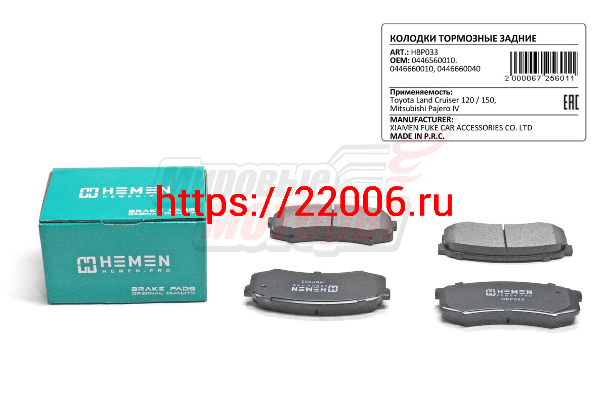 - Колодки торм. зад. диск. Toyota Land Cruiser 120, 150, Prado, Mitsubishi Pajero IV (HBP033) в Уфе недорого