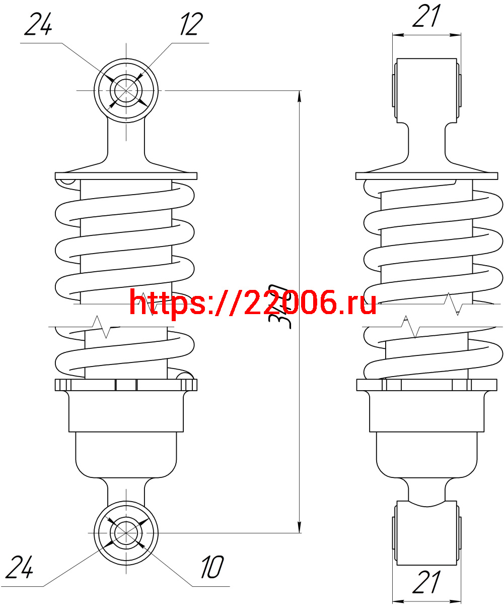 - Амортизатор зад. L-340, D1-24, d1-12, Н1-21, 2-24, d2-10, Н2-21 Alpha ANDES в Уфе недорого